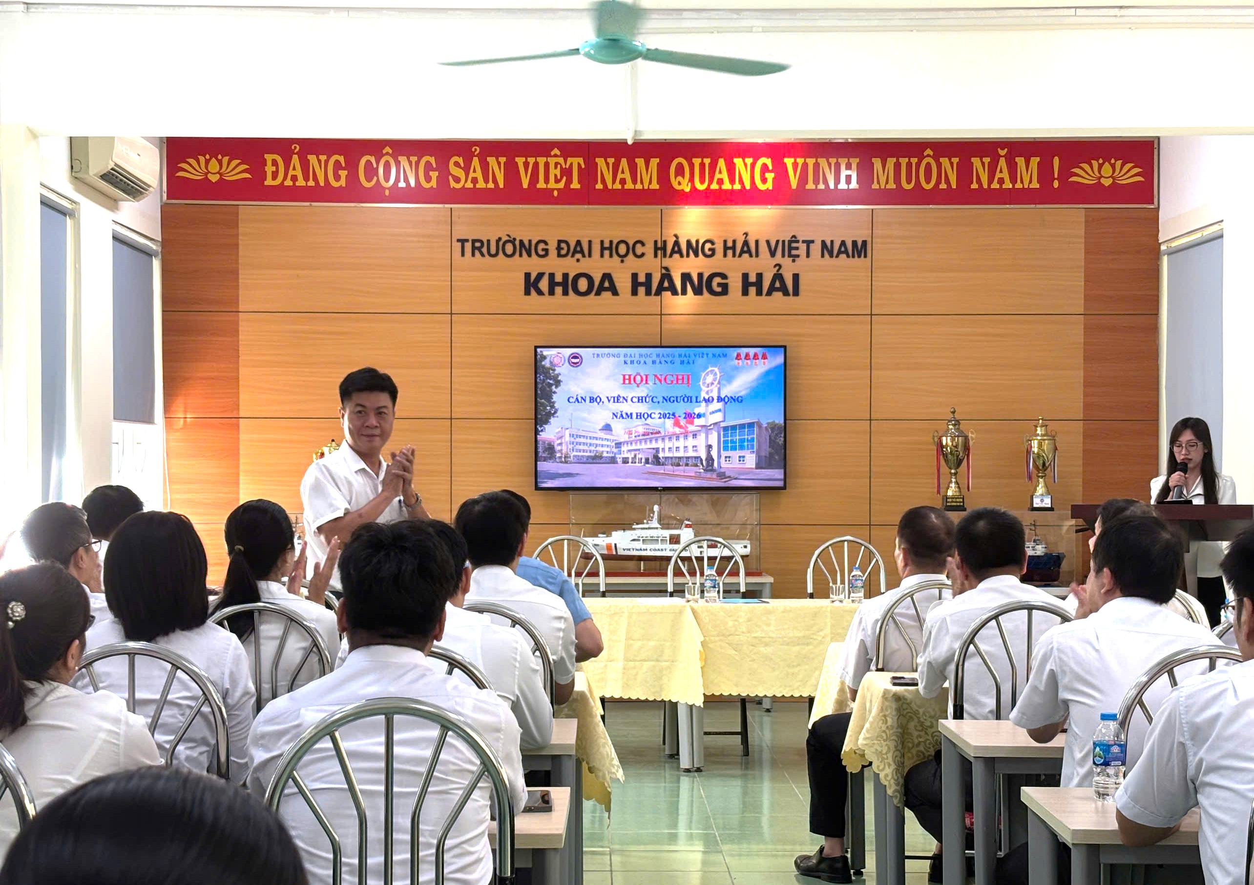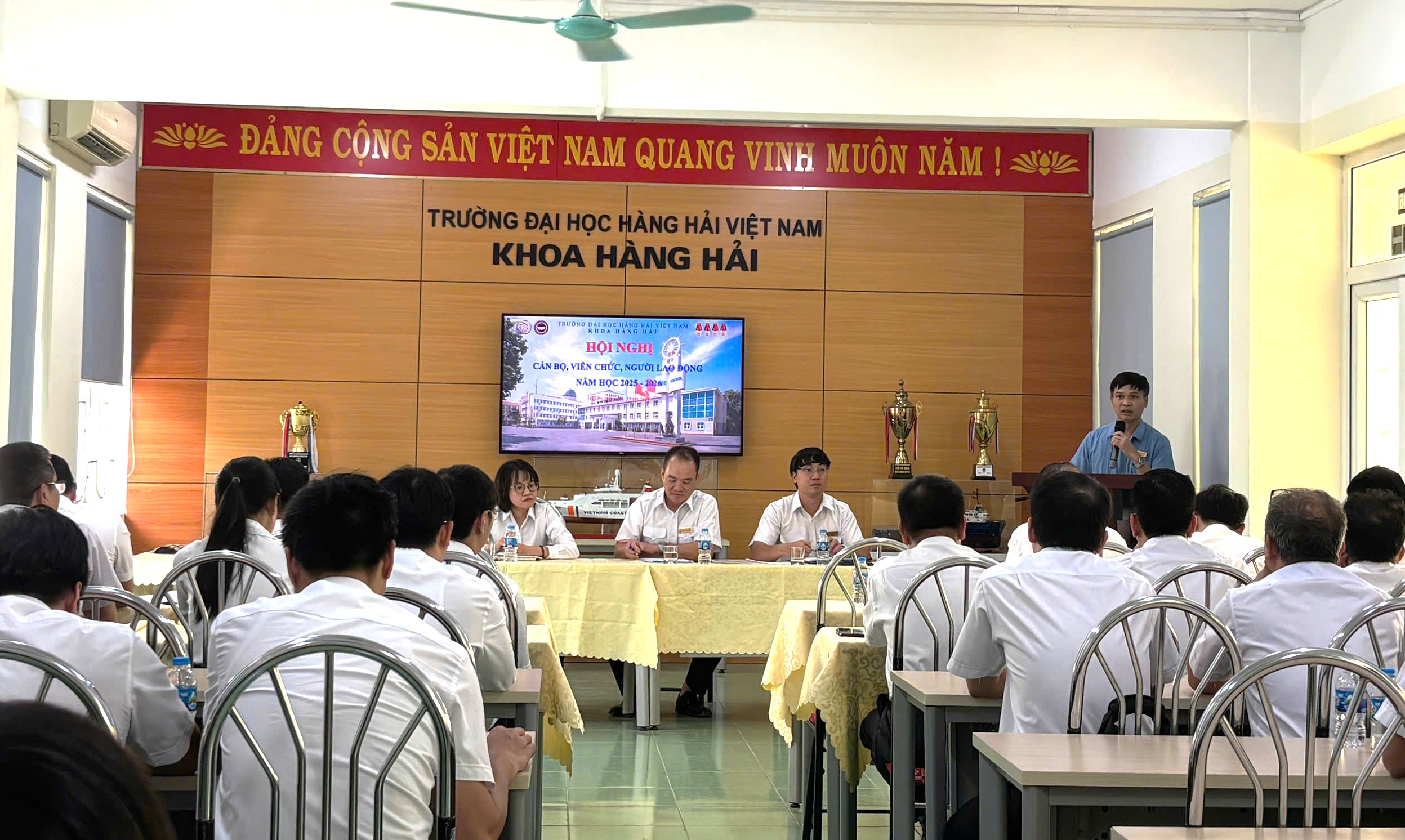 Thực hiện Kế hoạch số 1920/KH-ĐHHHVN của Trường Đại học Hàng hải Việt Nam, vào lúc 08h30 ngày 19/9/2025 tại văn phòng 206A2, Khoa Hàng hải đã long trọng tổ chức Hội nghị Cán bộ, Viên chức và Người lao động năm học 2025 – 2026.