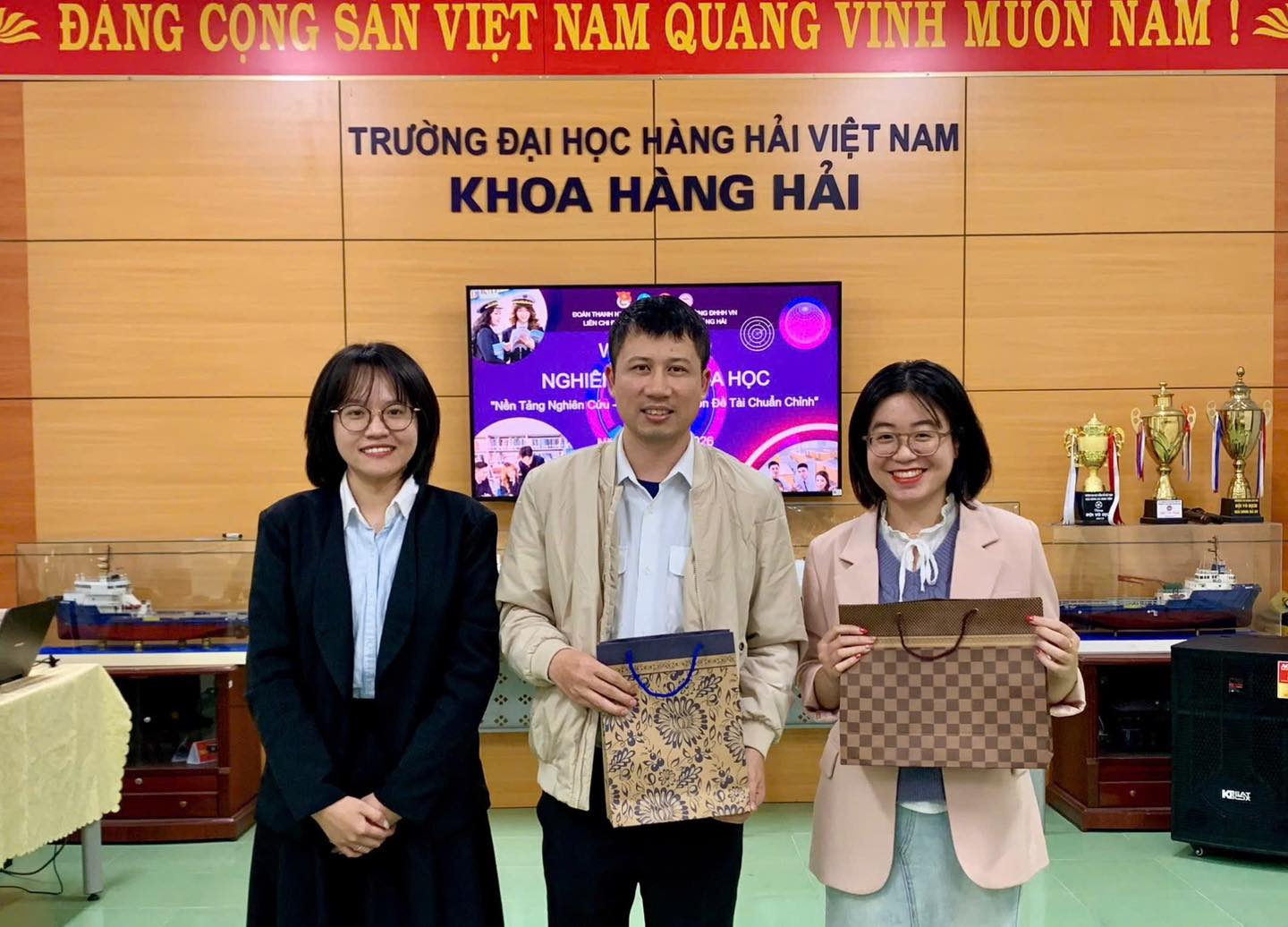 Đồng hành cùng chương trình là thầy TS. Đỗ Văn Cường – Phó Trưởng Bộ môn Luật Hàng hải và cô ThS. Nguyễn Ngọc Hà – Giảng viên Bộ môn Luật Hàng hải, những người đã mang đến những góc nhìn sâu sắc, thực tế và đầy cảm hứng về hành trình chuyển hóa một ý tưởng thô sơ thành đề tài nghiên cứu hoàn chỉnh. Với phong cách trình bày rõ ràng, súc tích và gần gũi, các thầy cô đã giúp sinh viên hiểu sâu hơn về bản chất của NCKH, cách tư duy học thuật đúng đắn cùng các nguyên tắc quan trọng để xây dựng một đề tài vừa chặt chẽ, vừa giàu tính ứng dụng.